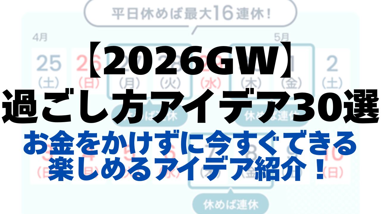 2026年は“家で過ごすGW”が主流なので、暇=チャンスでもあります。