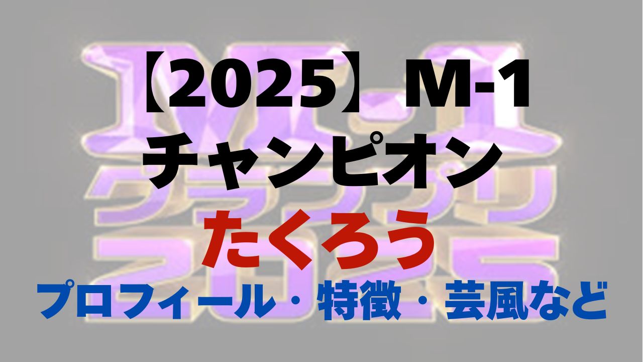M-1グランプリ2025で初の決勝進出、そして初優勝を果たした漫才コンビ「たくろう」は、長年劇場で培ってきた独自のスタイルがついに全国に届いた存在です。
