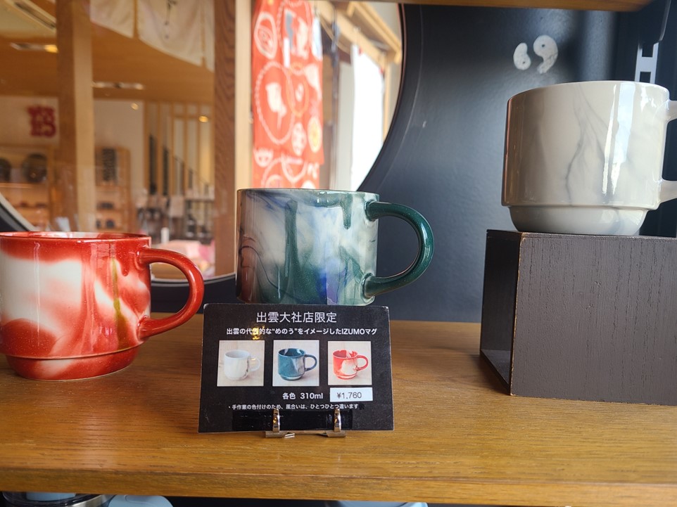 出雲大社前にある店舗でも、ご当地デザインのマグカップが販売されています。