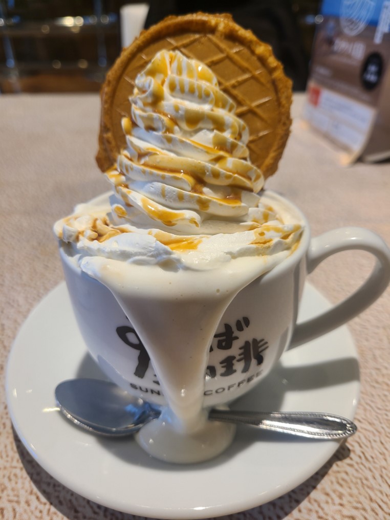 1回目は鳥取砂丘コナン空港の店舗で、キャラメルウインナーコーヒーを注文しました。